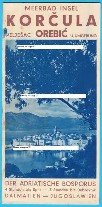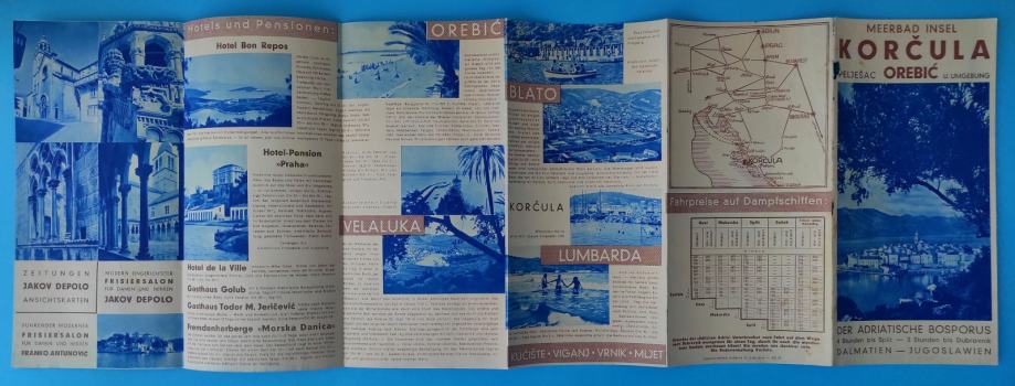 OTOK KORČULA OREBIĆ VELA LUKA BLATO predratni turis. prospekt brošura