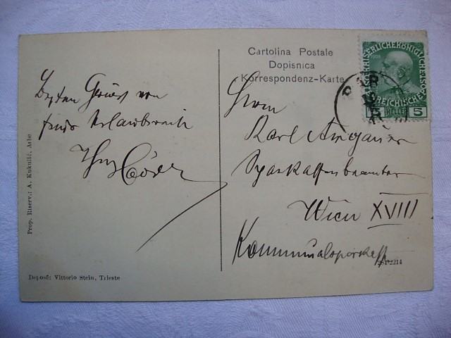 A.Kukulić - izdavać Arbe - dopisnica putovala 1913. za Beč