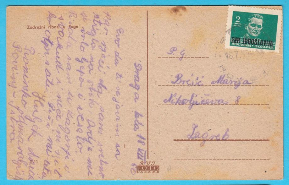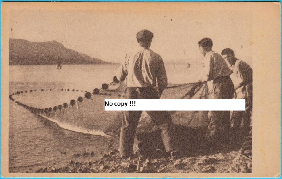 PAG - Zadružni ribari u Pagu * stara razglednica 1950. g. * ribarstvo