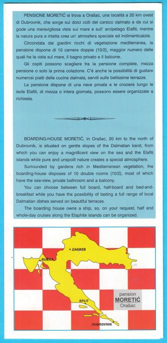 PANSION MORETIĆ ORAŠAC (Dubrovnik) stara turistička brošura prospekt