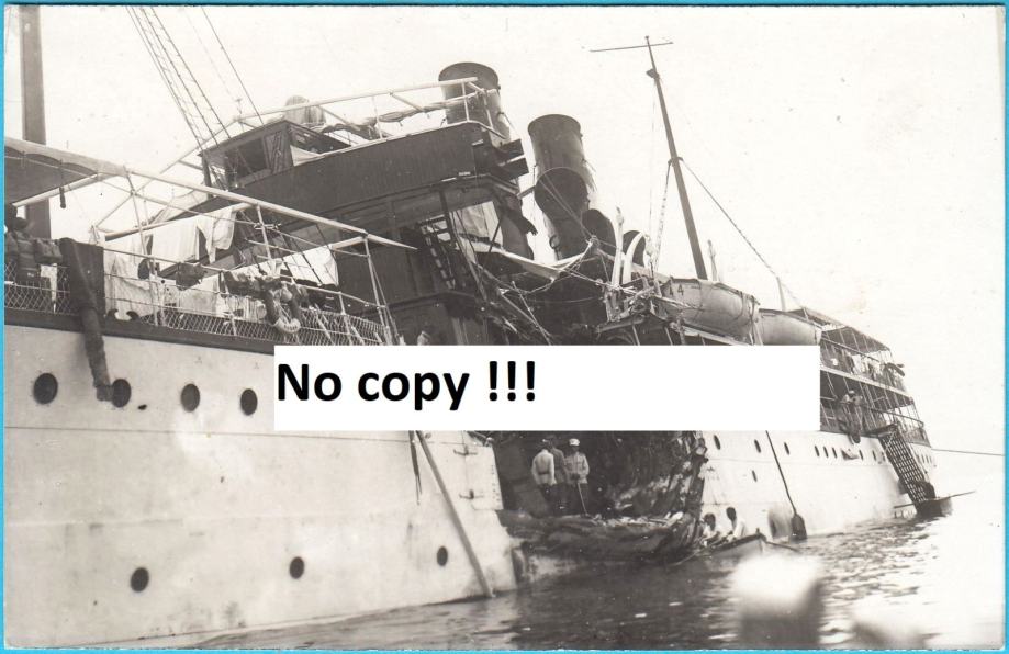 Stara originalna foto razglednica parobroda "Karađorđe" nakon sudara sa talijanskim parobrodom "Francesco Morosini" dne 12.07.1930. godine u Pašmanskom kanalu.