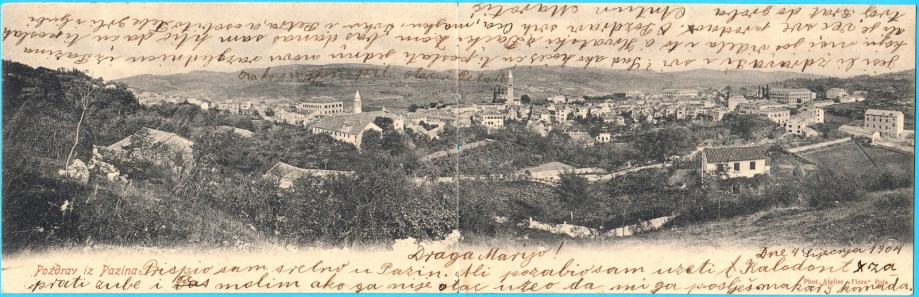 PAZIN - dvostruka razglednica ... Putovala u Marčana 1904. god.* Istra