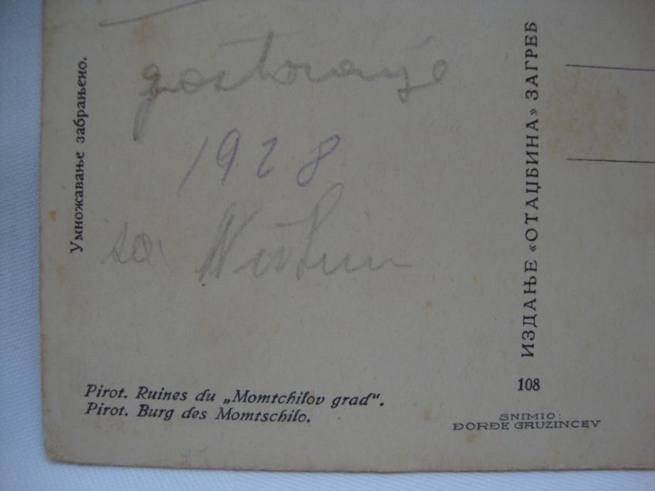 PIROT -MOMČILOV GRAD postcard 1928. - dopisnica Pirot
