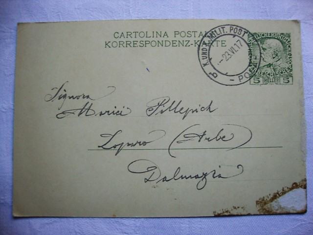 Putovala 1917. godine na žigu iza a sprijeda je napisana 1914. lijevi kut svakako veoma interesantna