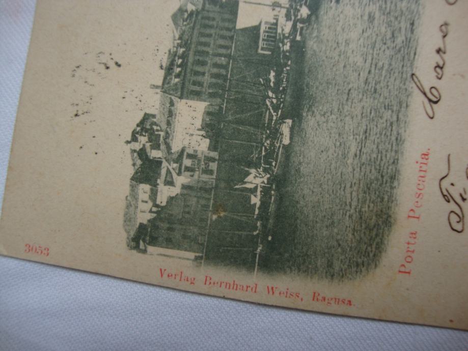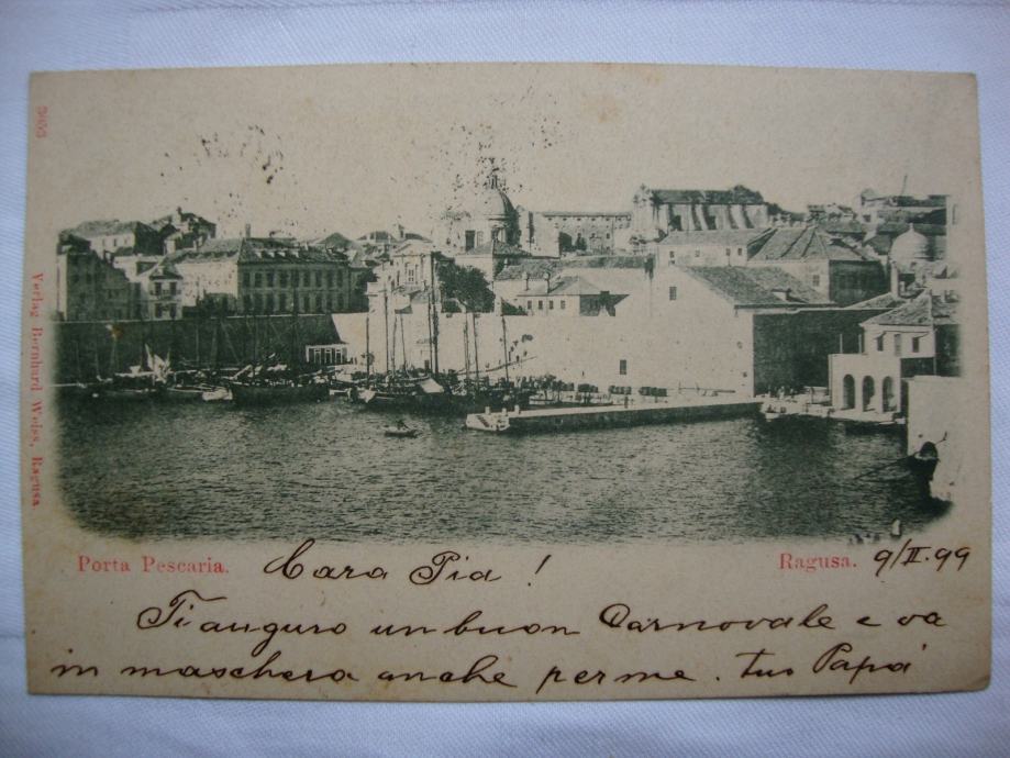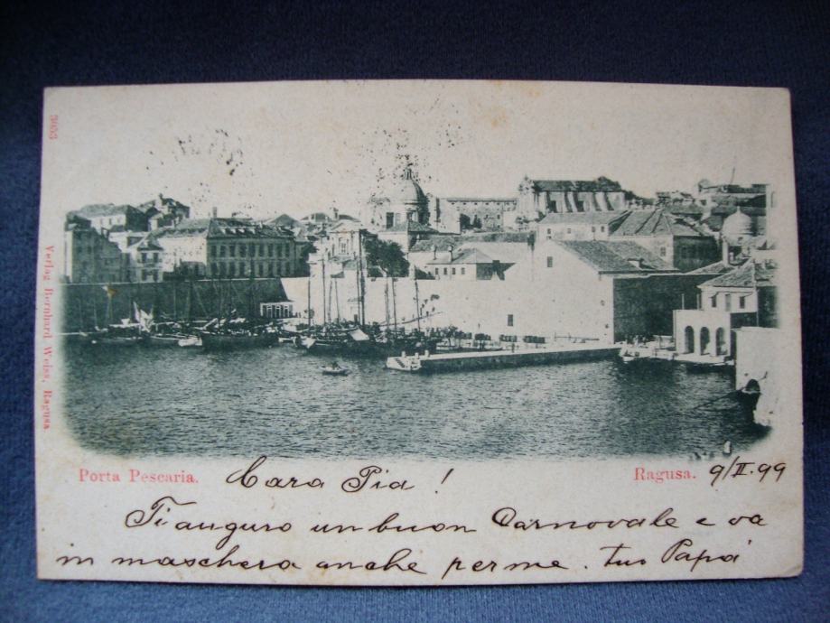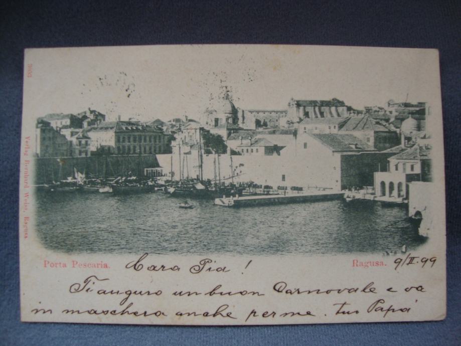 Rijetka razglednica Dubrovnika iz 19. stoljeća sa motivom luke Porta pescaria ,Ragusa putovala 1899. godine za Spalato