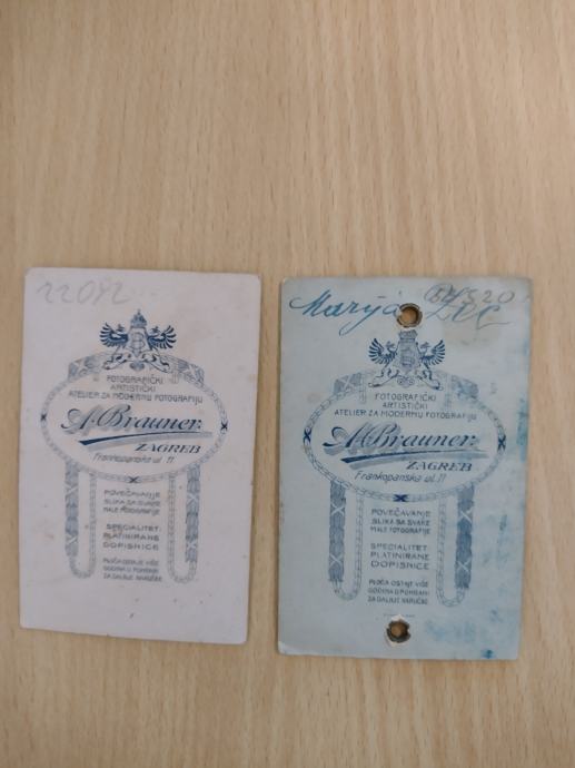 Portreti, fotografije na kartonu. Atelier A. BRAUNER, Zagreb