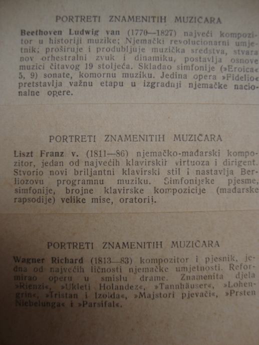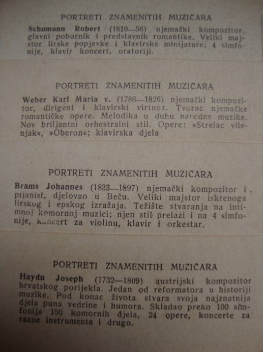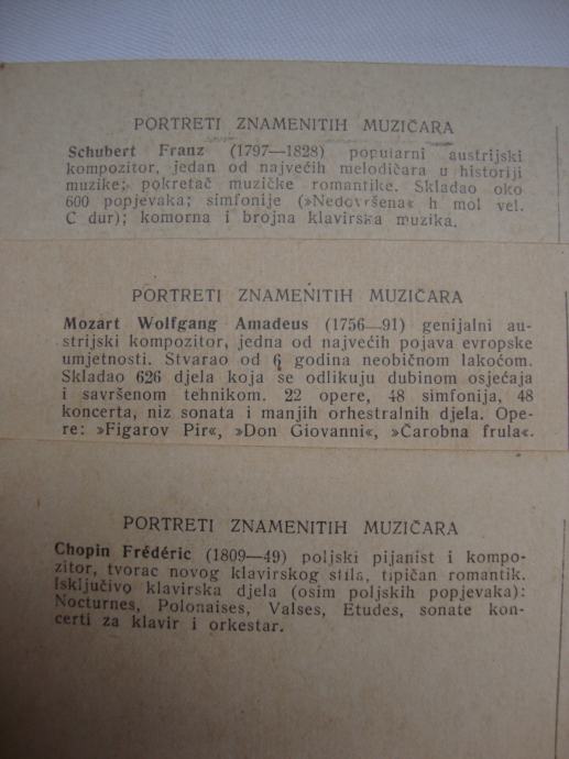 PORTRETI ZNAMENITIH MUZIČARA XVIII. i XIX. STOLJEĆA -razglednice