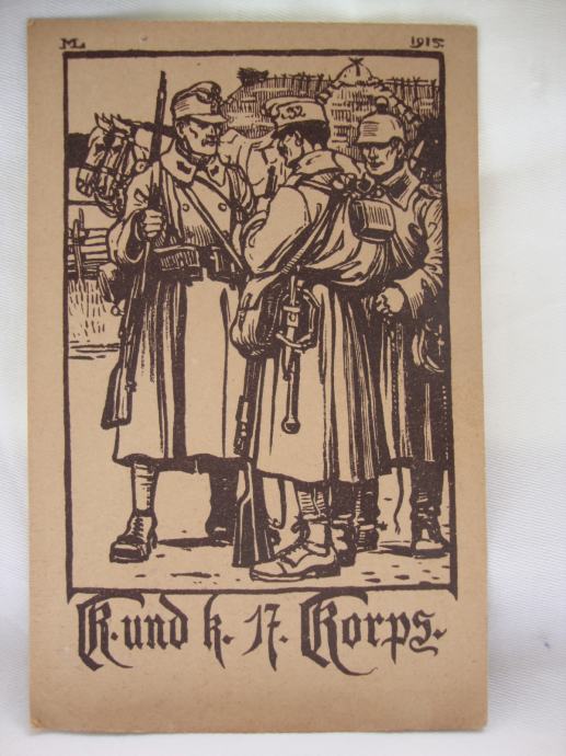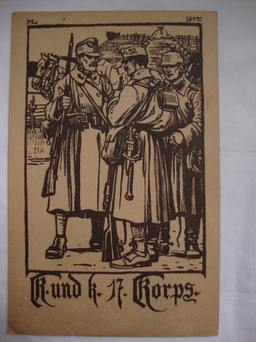 Dopisna karta WWI. umjetnička potpisana ML. 1915. 17. korpus