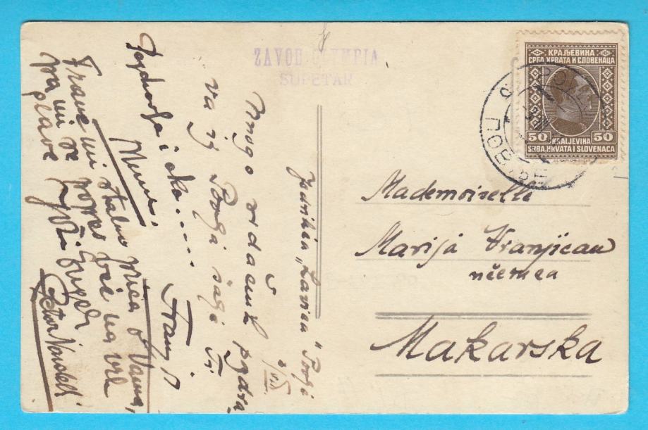 Stara predratna razglednica Povlja na Braču (otok Brač), putovala 1930-tih godina iz Povlja u Makarska.
