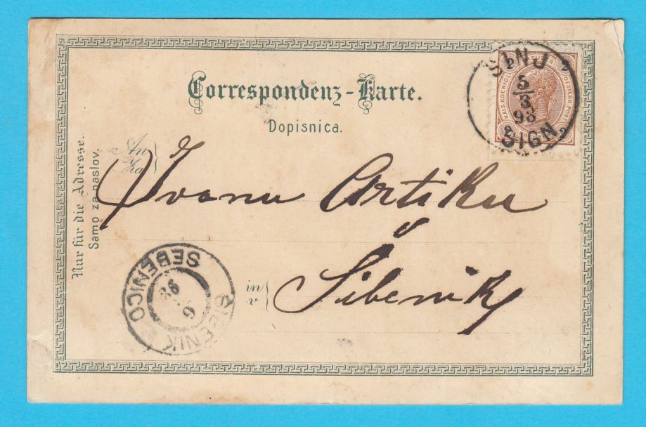 Razglednica je putovala davne 1898. godine iz Sinja u Šibenik.