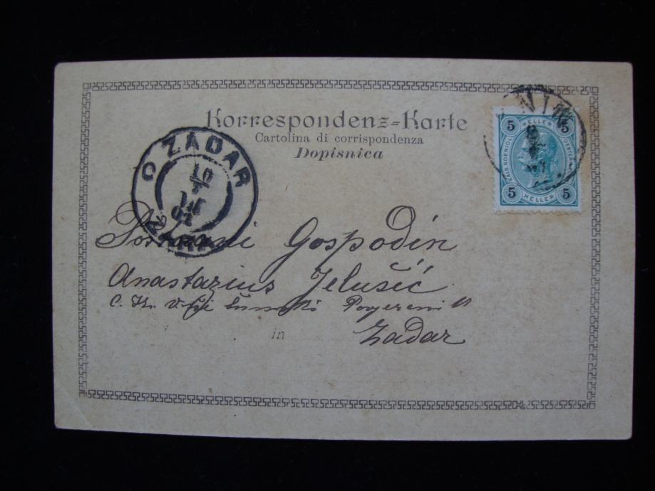 Predivna rijetka dopisnica Knina iz 19 stoljeća putovala za Zadar 1900. godine