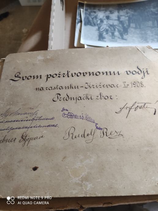 Stara fotografija prednjačkog zbora u Križevcima 1908.godine.Veličina 28/22, fotografija na kartonu. Oštećen samo rub kartona, fotografija cijela. Pogodno za muzeje ili sportska društva.