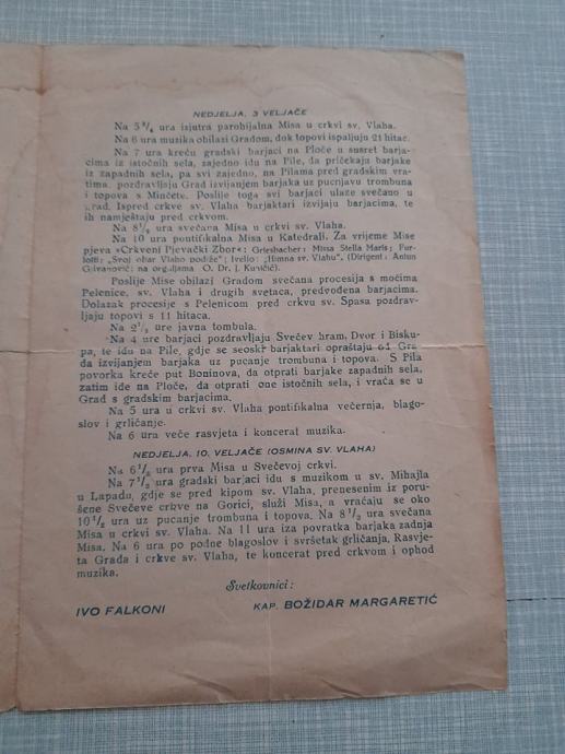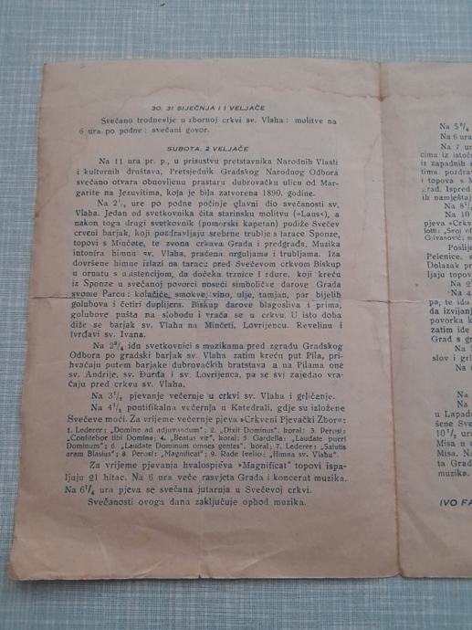 prospekt program svečanos Sv. Vlaha dubrovnik MCMXLVI 1946 g,religija