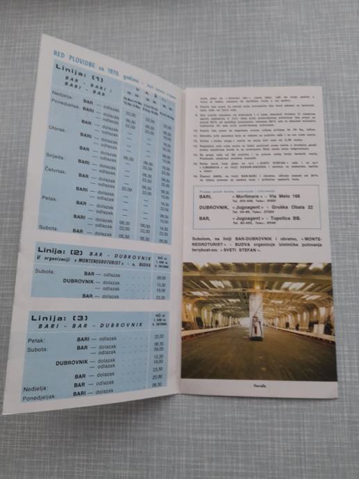 bar-bari-bar-dubrovnik, red plovidbe tarife za 1970. godinu, vidi slike
