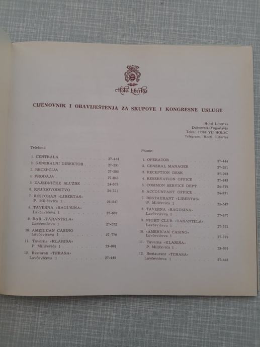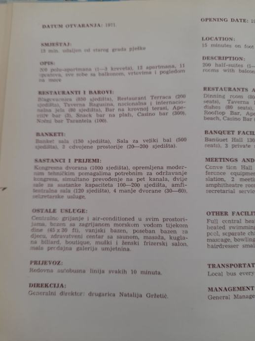 detaljno opisan hotel s cijenama, meni s cijenama i dvije naljepnice hotela i đepni kalendar 1979, vidi slike