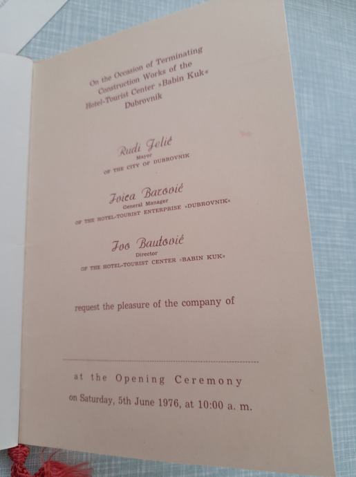 prospekt 5.6.1976 svečano otvaranje htp babin kuk dubrovnik