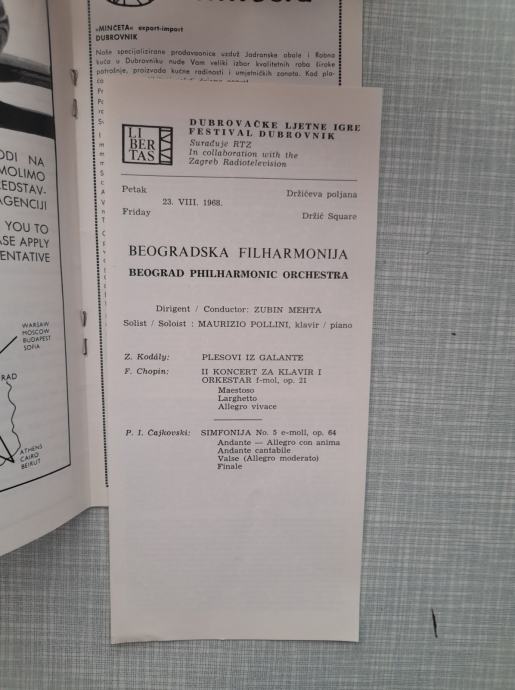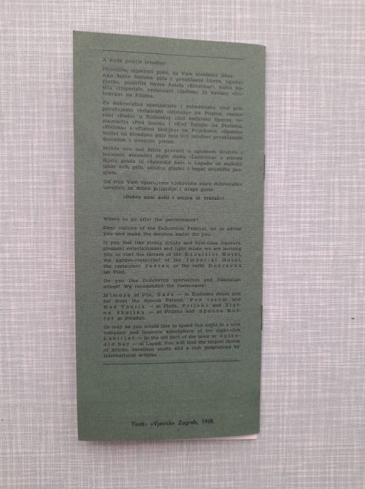 prospekt muzika music 1968 dubrovacke ljetne igre,dubrovnik