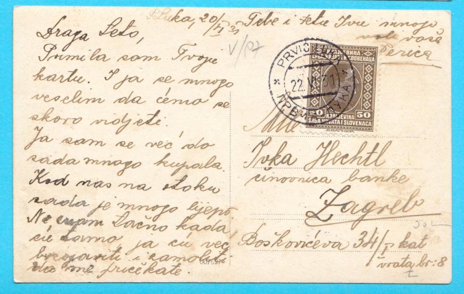 Stara predratna razglednica, putovala 1931. godine.iz Prvić Luke u Zagreb.