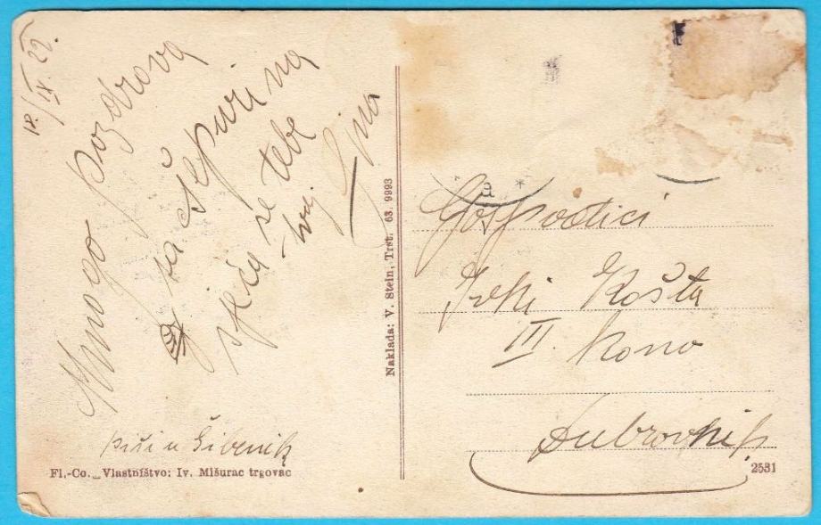 Naklada: V. Stein - Trst ... Vlastništvo: Iv. (Ivan ?) Mišurac, trgovac