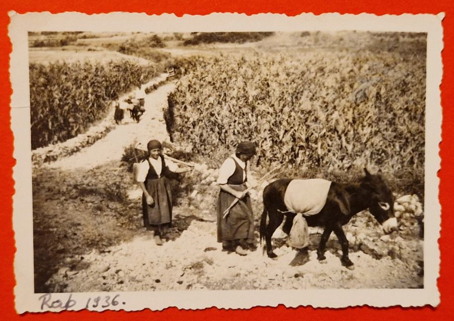 Rabljanke s magarcima u polju vinogradu Arbe Rab
