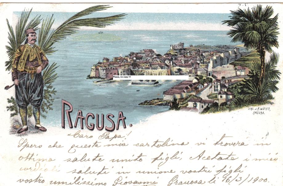 RAGUSA (Dubrovnik) ... LITHO ... Putovala 1900-te u Fiume (Fiumara)
