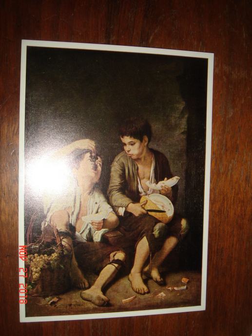 razglednica - umjetnost - reprodukcija Bartolome Esteban MURILLO - voče ( dinje i grožđe ) 1958 Minhen