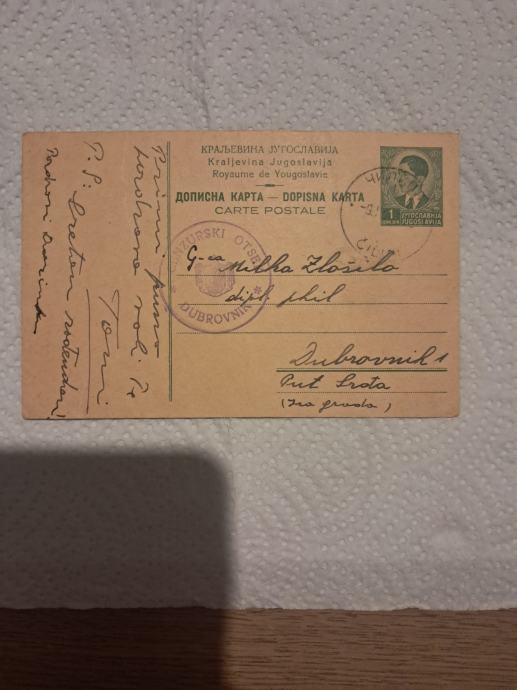 razglednica 1941 kraljevina jugoslavija pečatirana dubrovnik