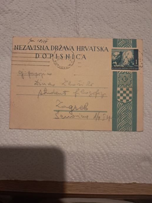 razglednica 1942 nezavisna država hrvatska-pečatirana dubrovnik