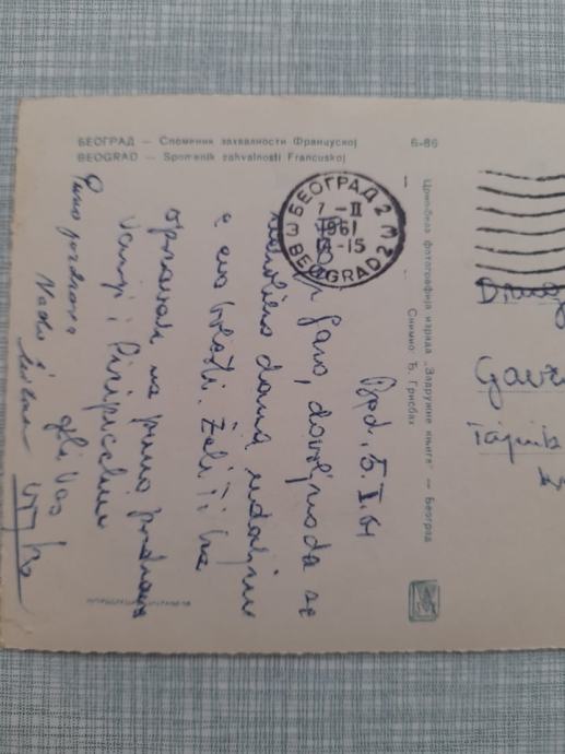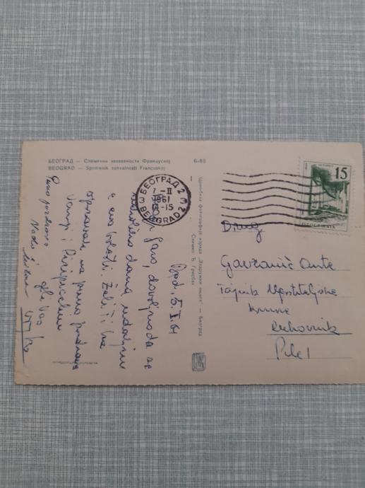 razglednica 1961 beograd spomenik zahvalnosti francuskoj