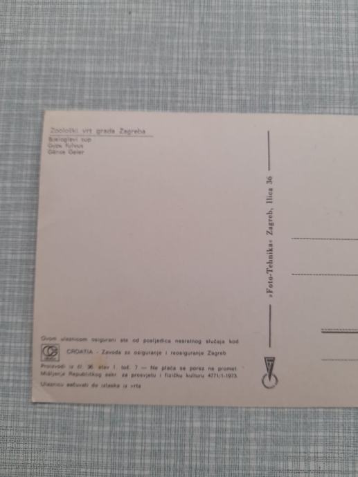 razglednica ulaznica za 1973 zoološki vrt bjeloglavi sup