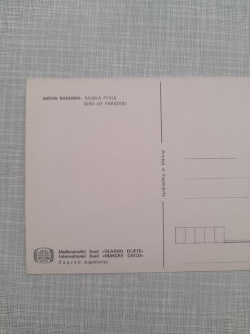 razglednica antun bahunek rajska ptica zagreb jugoslavija,slika