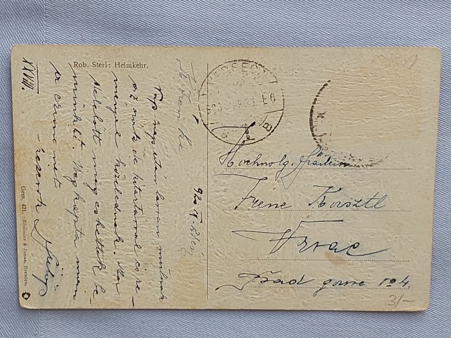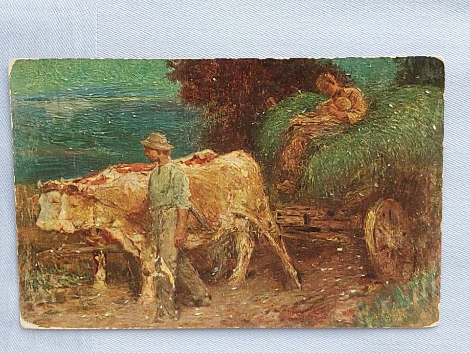 RAZGLEDNICA - Čestitka. Volovi sa kolima. reljefna-kolor 1920 g. Mob