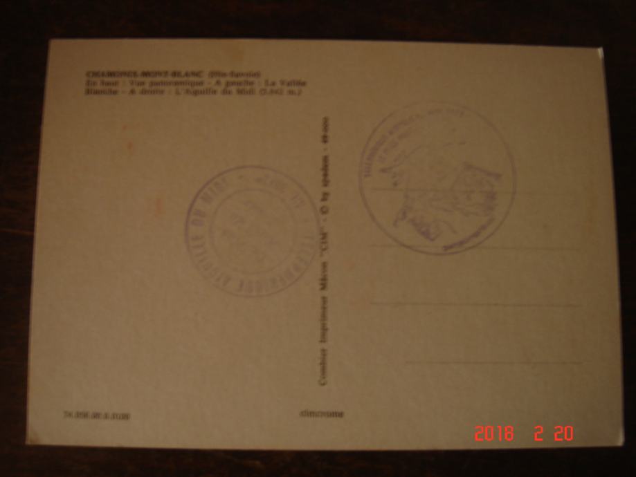 razglednica planinskog vrha u Chamonixu - Aiguille du Midi Mont - Blanc sa planinarskim pečatom