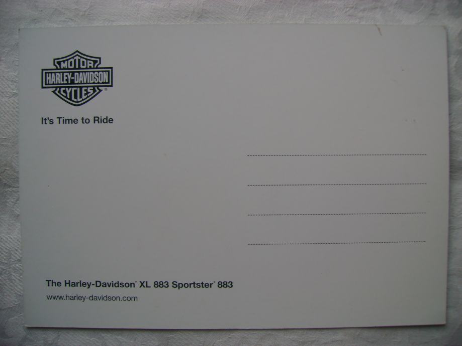 Razglednica - Harley Davidson XL 883 Sportster - nova, nije putovala, stanje je vidljivo na slikama.