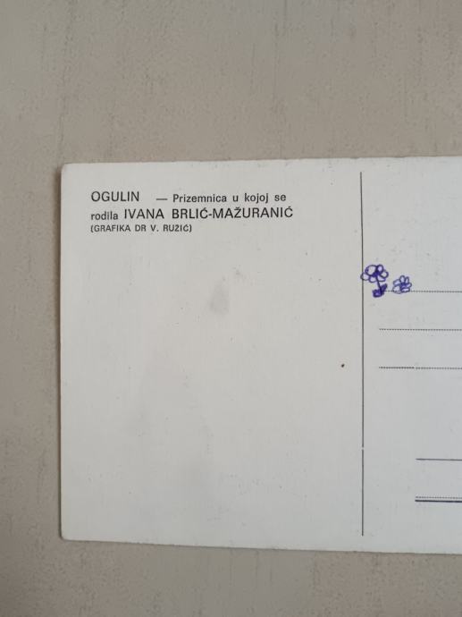 Prodajem razglednicu , rodne kuće Ivane Brlić-Mažuranić u Ogulinu, koja nije putovala.