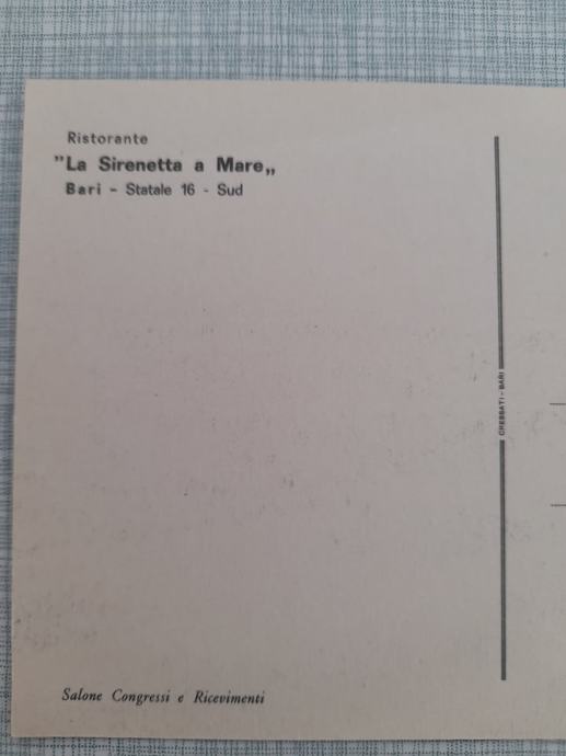 razglednica bari ,,la sirenetta a mare-statale 16-sud 70-tih godina