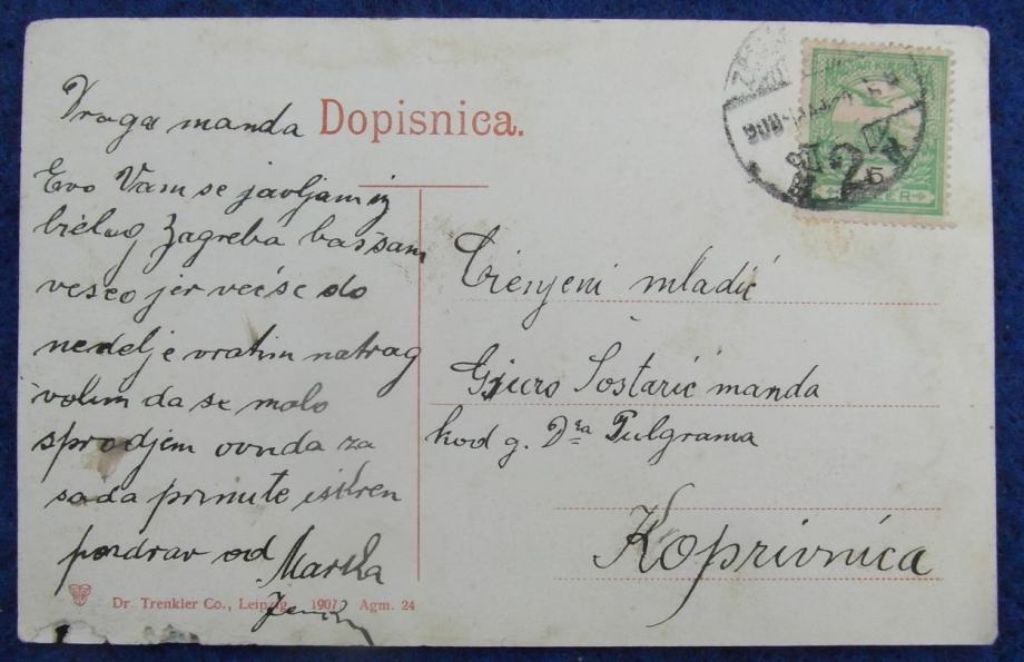 Razglednica Zagreb - Hrvatsko sveučilište iz 1908 godine