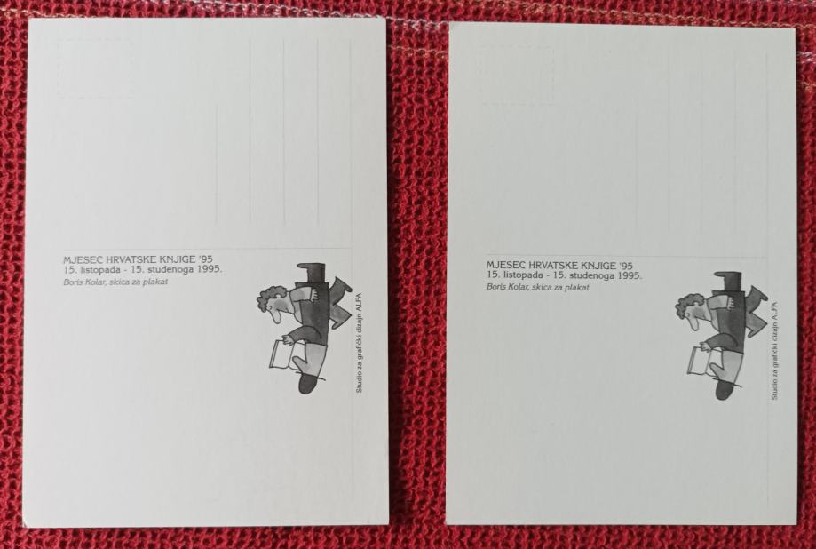 Razglednice "MJESEC HRVATSKE KNJIGE" iz 1995. godine. Cijena jedne razglednice je 1,5 €. U Zagrebu moguće osobno preuzimanje.