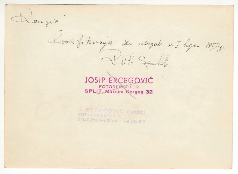 Prekrasna originalna stara fotografija RNK Split iz najslavnijih dana - Pretkvalifikacije za ulazak u Prvu saveznu ligu 1957. godine. Slijedeće sezone 1957/1958 RNK Split prvi put nastupa u Prvoj saveznoj ligi bivše Jugoslavije.