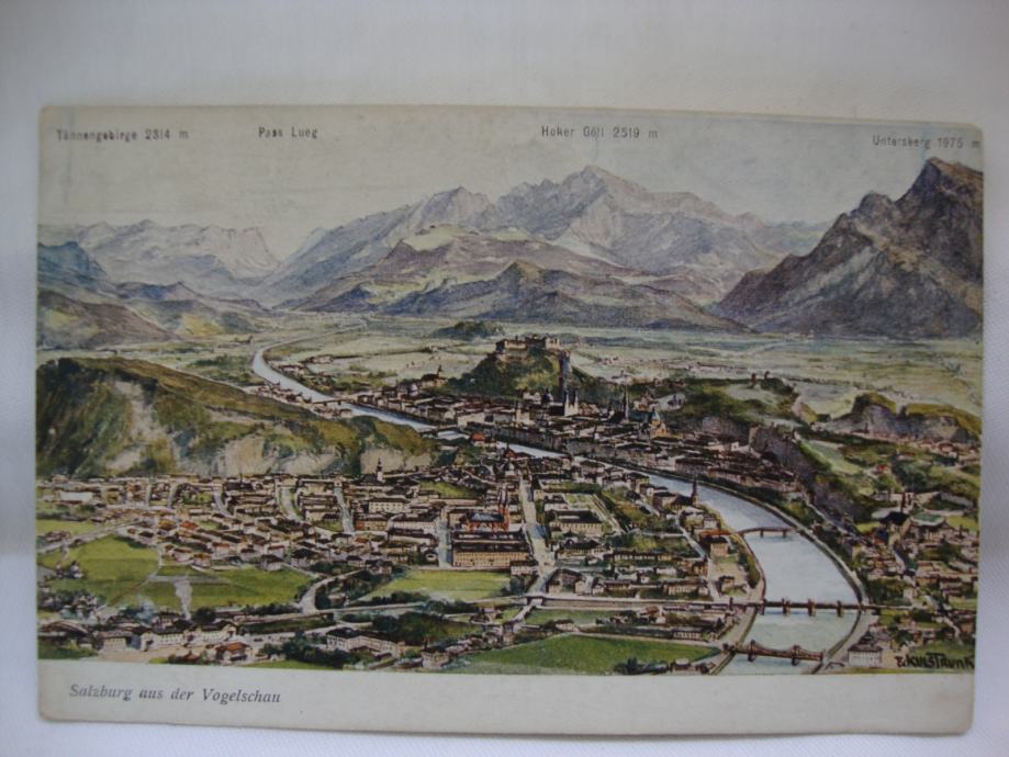 Salzburg aus der Vogelschau,old postcard 1920.god.-razglednica Austria