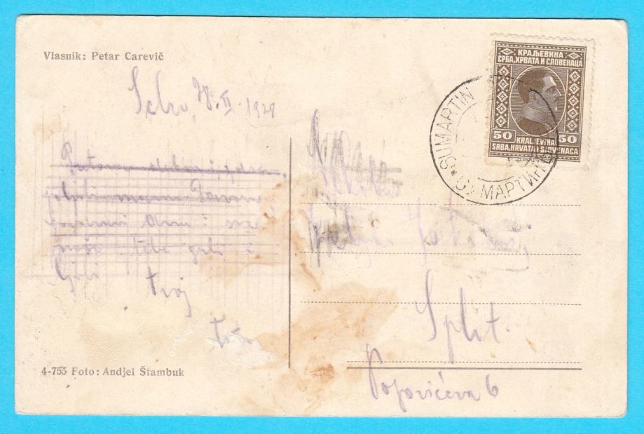 SELCA (Otok Brač) - Jelačićev Trg * Stara razglednica, putovala 1928. iz Sumartina u Split RRR