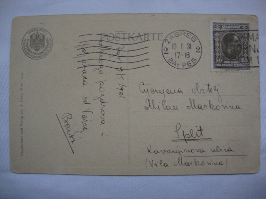 Razglednica Verlag Beč putovala Zagreb - Split