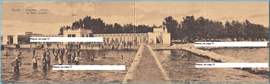 Vrlo rijetka stara razglednica Šibenika sa poznatim šibenskim kupalištem Jadrija.
