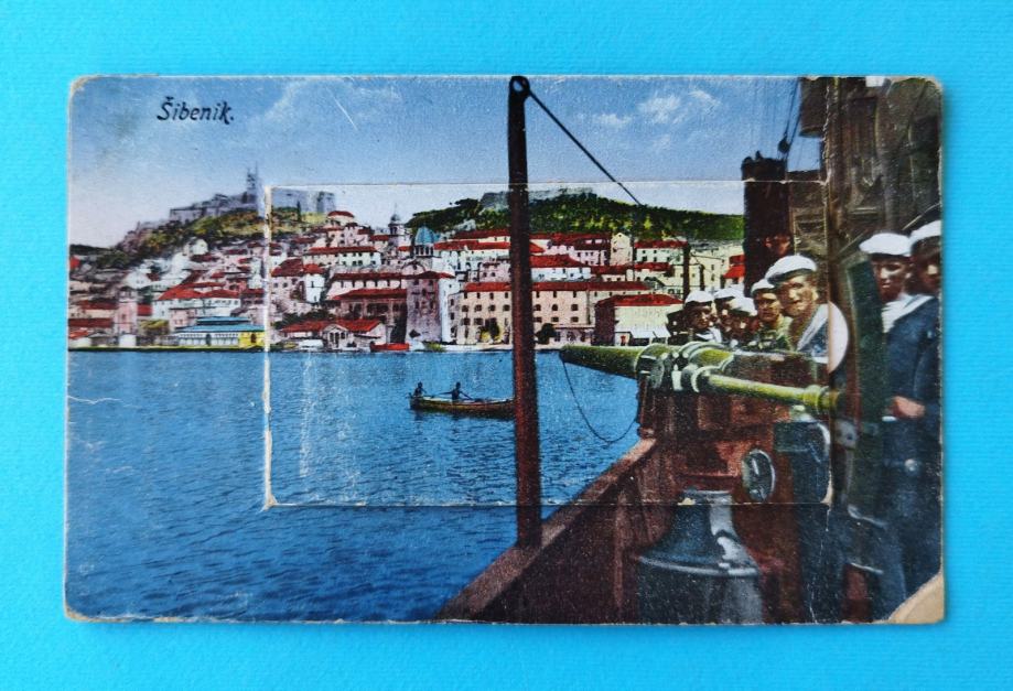 Vrlo zanimljiva stara predratna razglednica Šibenika - Leporello (u razglednici se nalazi "harmonika" sa 8 malih sličica).