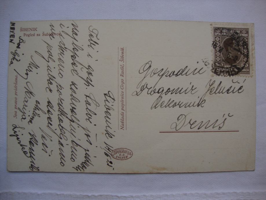 Dopisnica Šibenika putovala 1925. godine za Drniš
