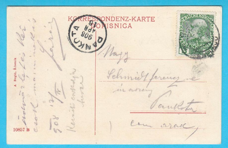 Prekrasna i vrlo rijetka stara razglednica Šibenika, putovala davne 1908. godine u Pankotu (Rumunjska).