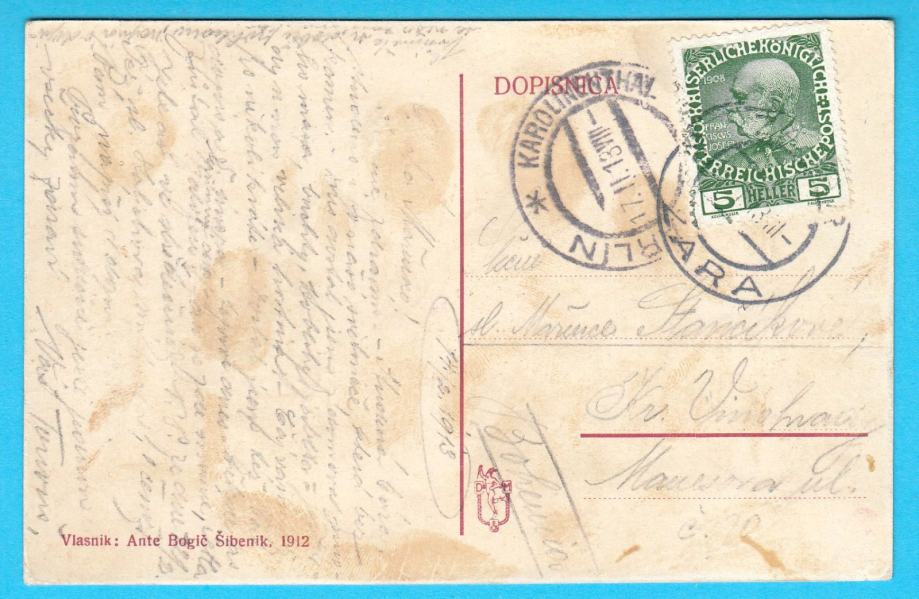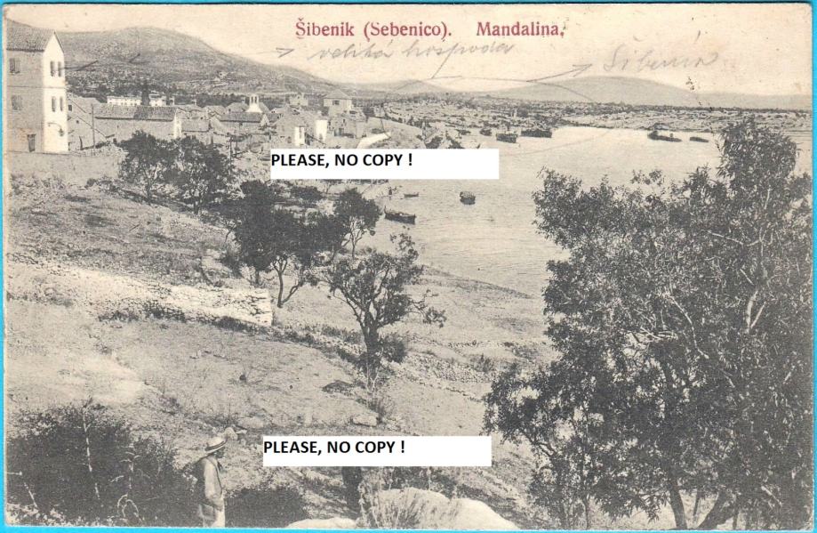 Stara austro-ugarska razglednica Mandaline kod Šibenika, putovala davne 1913. godine.