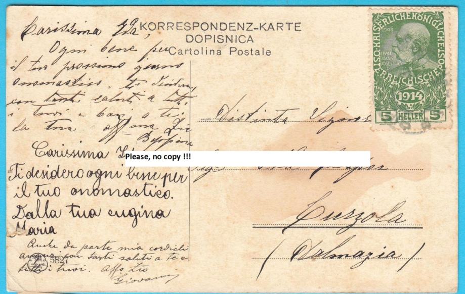Vrlo zanimljiva stara austro-ugarska razglednica Šibenika, putovala 1914. godine u Korčulu (Curzola).