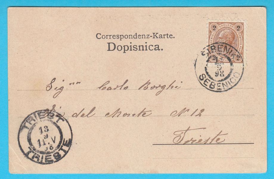 Stara razglednica Šibenika, putovala 1898. godine iz Šibenika u Trst.
