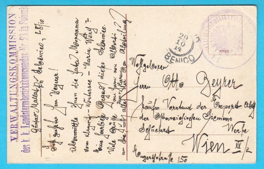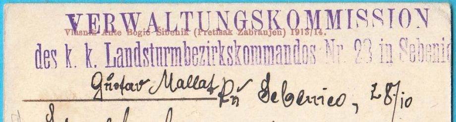 Stara razglednica Visovca, putovala početkom 1. svj. rata (1914. god.) sa vrlo zanimljivim žigom austro-ugarske komande u Šibeniku.